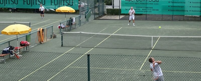 Das Wetter war nicht auf der Seite des Organisationskomitees der ersten „ATC Open“. Mehr als 48 Stunden regnete es bis kurz vor den ersten geplanten Ballwechseln. Doch anders als viele andere Turniere am vergangenen Wochenende begann das Turnier am Samstag um 11 Uhr – mit nur einer Stunde Verspätung. Kein einziger der 21 gemeldeten Teilnehmer der beiden Felder Damen 50 (9) und Herren 40 (12) hatte abgesagt – und alle konnten erleben, wie gut beim „Turnier im Grünen“ die grünen Canada-Tenn-Plätze mit Nässe zurechtkommen. Ein verdienter Lohn für Turnierchef Guido Peters und den Vereinsvorsitzenden Hans Wortmann, die sich stark engagiert hatten, das erste Leistungsklassen- (LK)-Turnier in der Vereinsgeschichte auszurichten.
