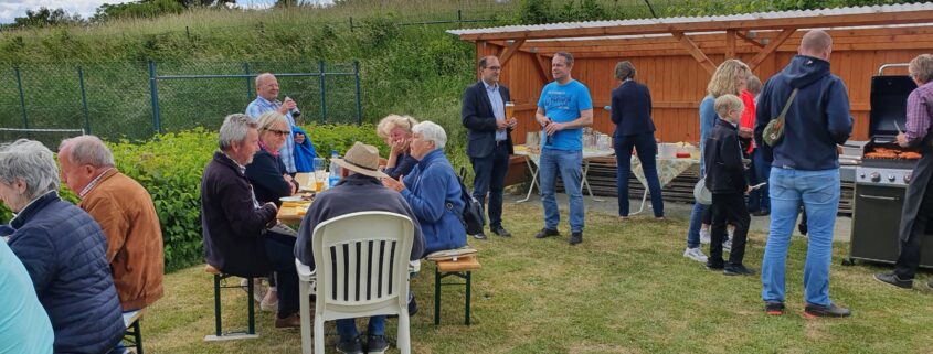 Nicht nur sportlich, sondern auch gesellschaftlich ist die Saison mittlerweile offiziell eröffnet. Zum Opening am 29. Mai kamen trotz recht kühler Temperaturen rund 40 Mitglieder und Gäste, darunter auch Bürgermeister Dr. Frank Blasch. Dass auf der kleinen Wiese zwischen Platz 1 und 2 gefeiert werden musste, weil auf der bisherigen Stammfläche gerade die Parkplatz-Bauarbeiten begonnen hatten, tat der guten Stimmung keinen Abbruch. Neben Gegrilltem und Salaten hatte der Vergnügungsausschuss mit einer Kuchentafel auf die Anlage gelockt, während sich die rund zehn Jugendlichen vor allem beim Schnuppertraining auf dem Platz austoben durften.